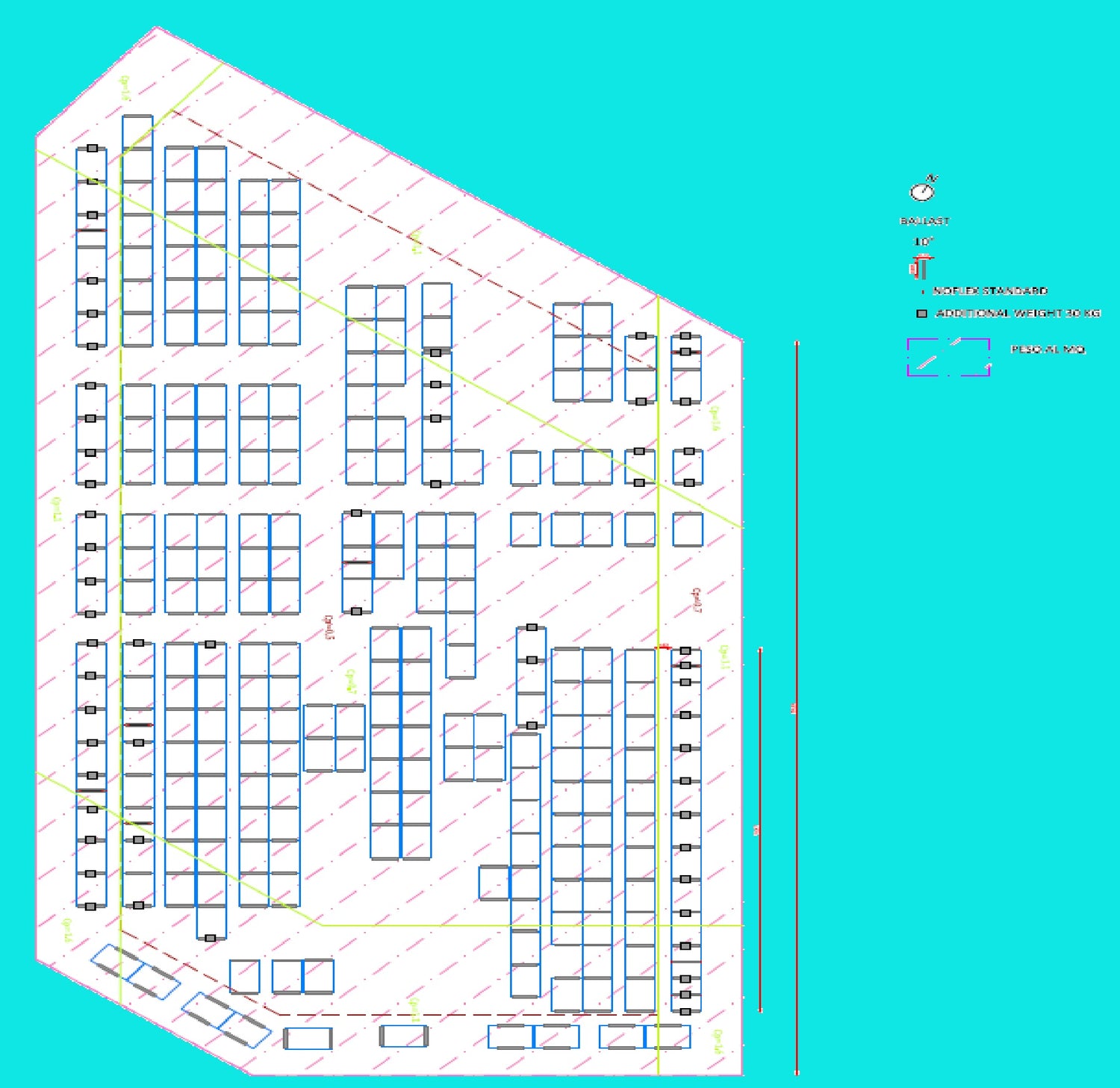Bij een aanvraag verzamelen we deze gegevens samen en maken hiervan een rapport met hierin een legplan (zie voorbeeld), een materiaallijst, windbelastingsberekening, gewichtsberekening/m2 van het totale systeem, een installatie-instructie van het gekozen systeem en een offerte voor de levering, afspraken en de levertijd.